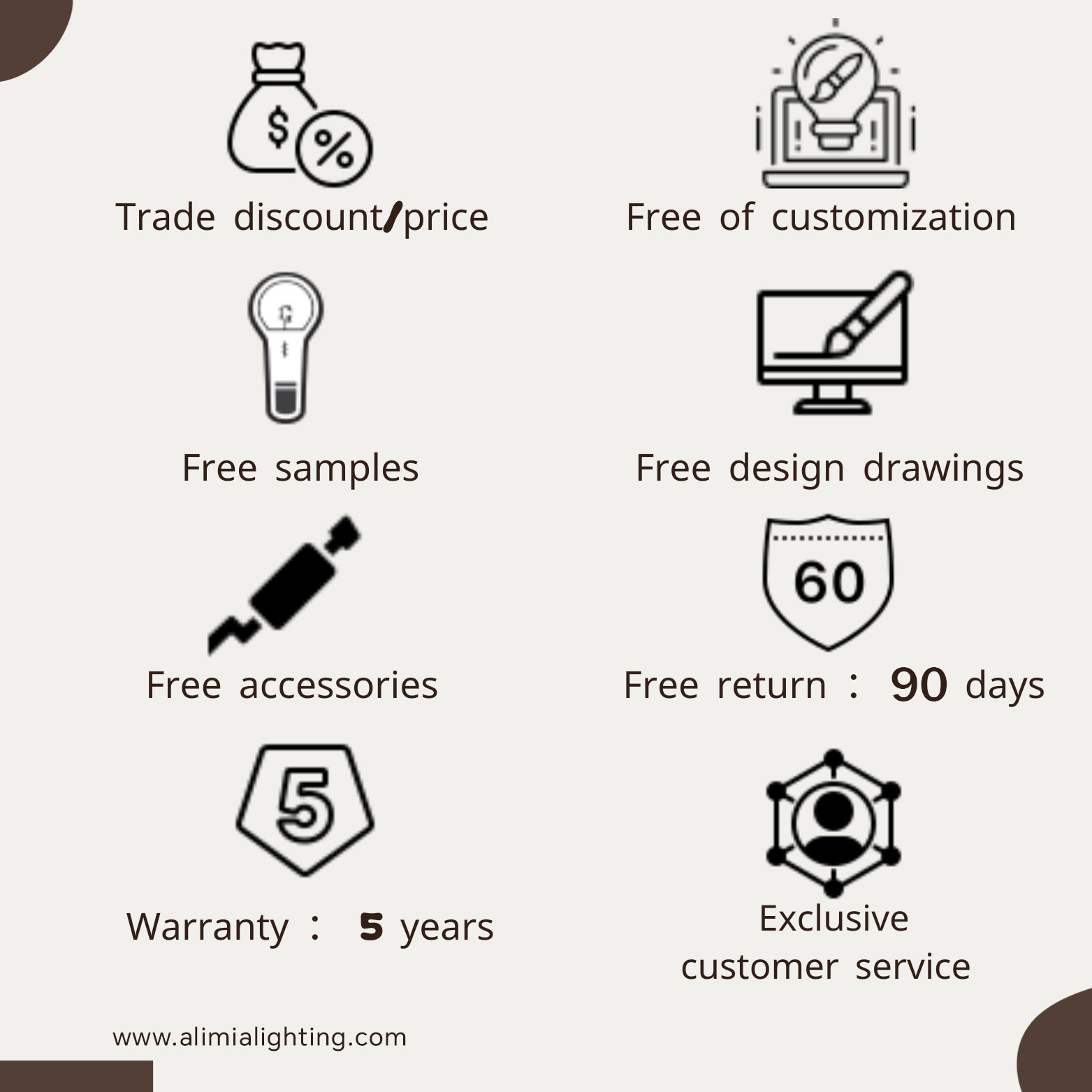 A specialized online retailer in lighting fixtures, showcasing company information such as craftsmanship, customized services, and shipping options.